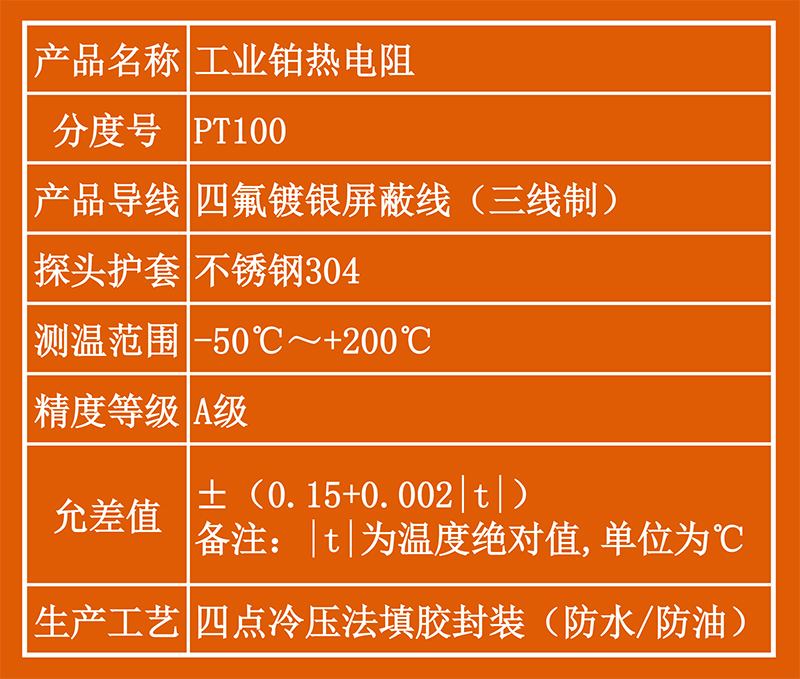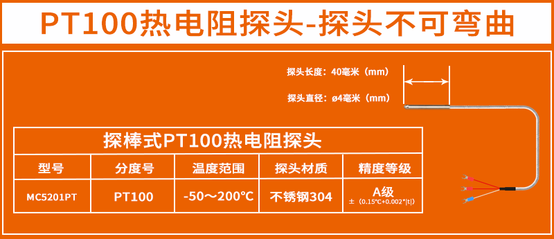 前瑾MCMETER PT100温度传感器 MC5201PT A级热电阻三线制-50℃~200℃